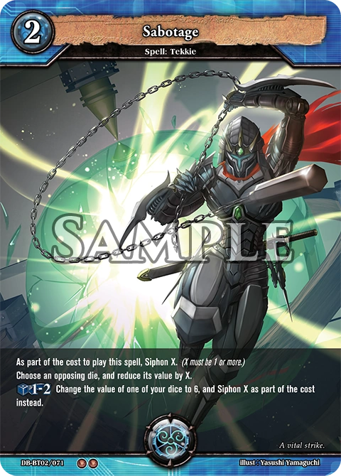 | As part of the cost to play this spell, Siphon X. (X must be 1 or more) Choose an opposing die, and reduce it's value by X. |