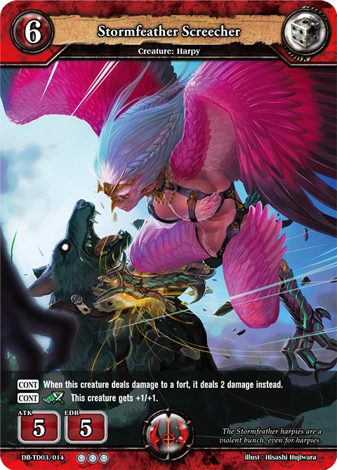 | [CONT] When this creature deals damage to a fort, it deals 2 damage instead. [CONT] [Dragocross: Green] This creature gets +1/+1. |